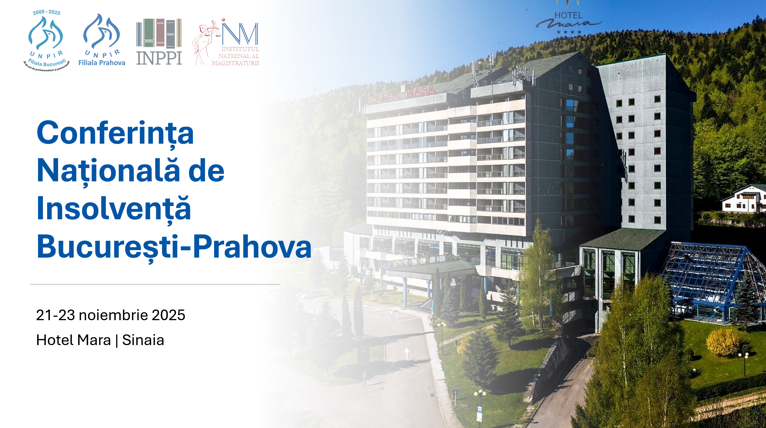 Uniunea Națională a Practicienilor în Insolvență din România (UNPIR) Filialele București și Prahova organizează Conferința Națională de Insolvență București-Prahova, în perioada 21–23 noiembrie 2025, la Hotel Mara din Sinaia.